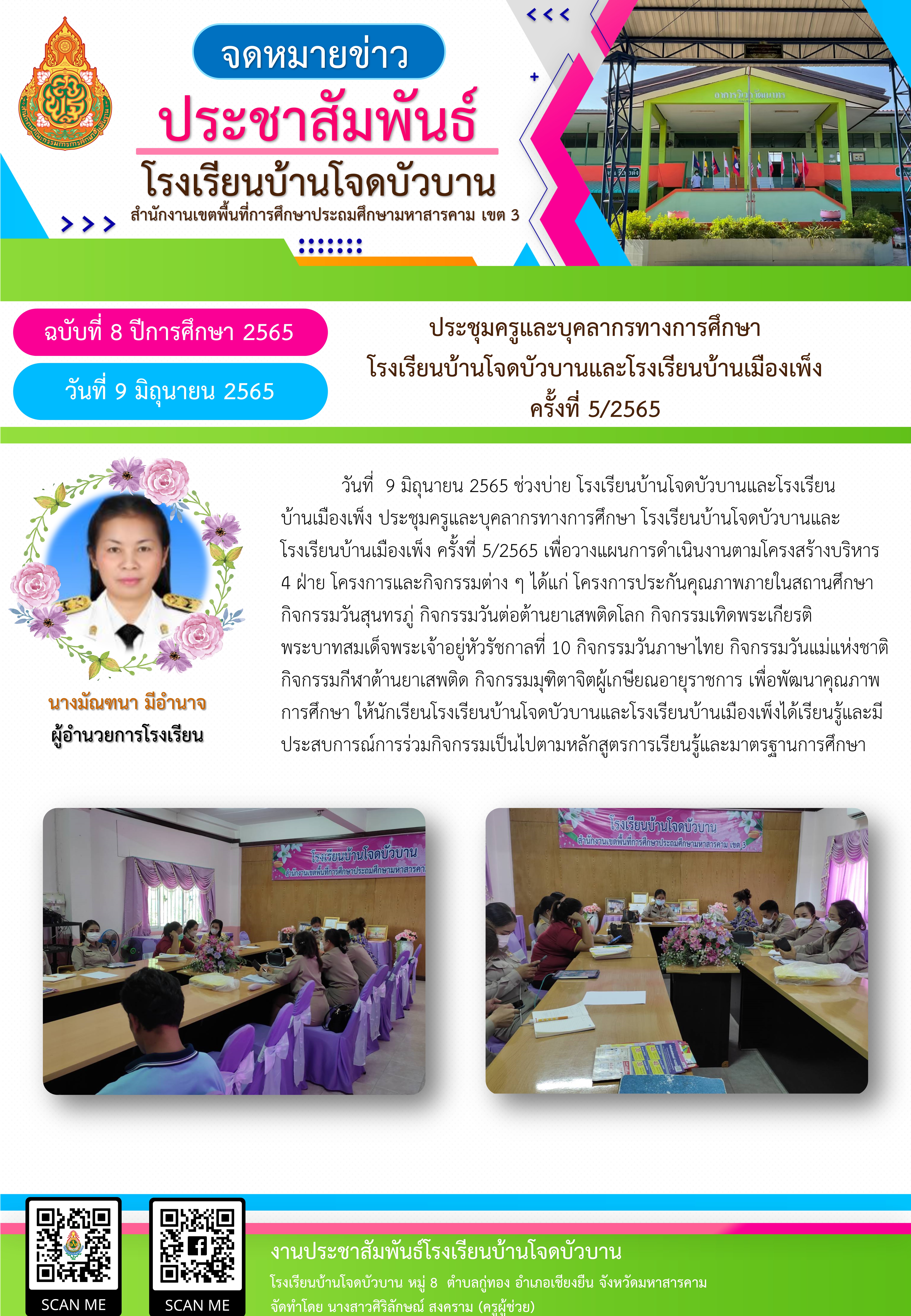 ประชุมครูและบุคลากรทางการศึกษา โรงเรียนบ้านโจดบัวบานและโรงเรียนบ้านเมืองเพ็ง ครั้งที่ 5/2565